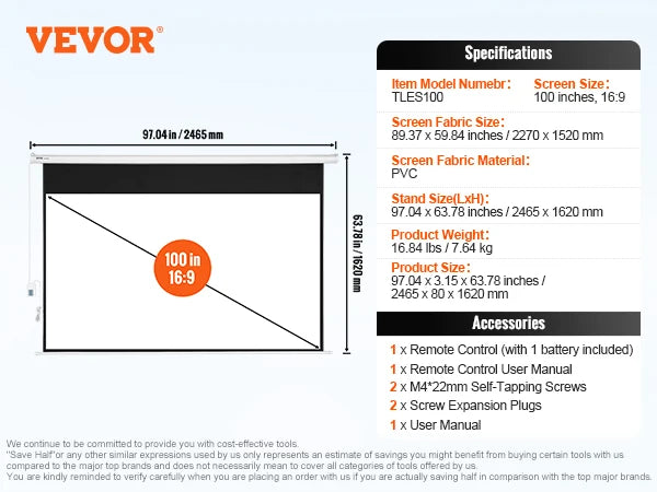 Screen Size: 100 inches, 16:9