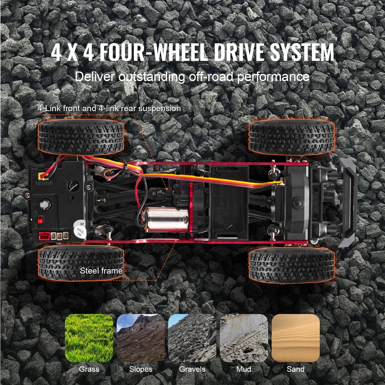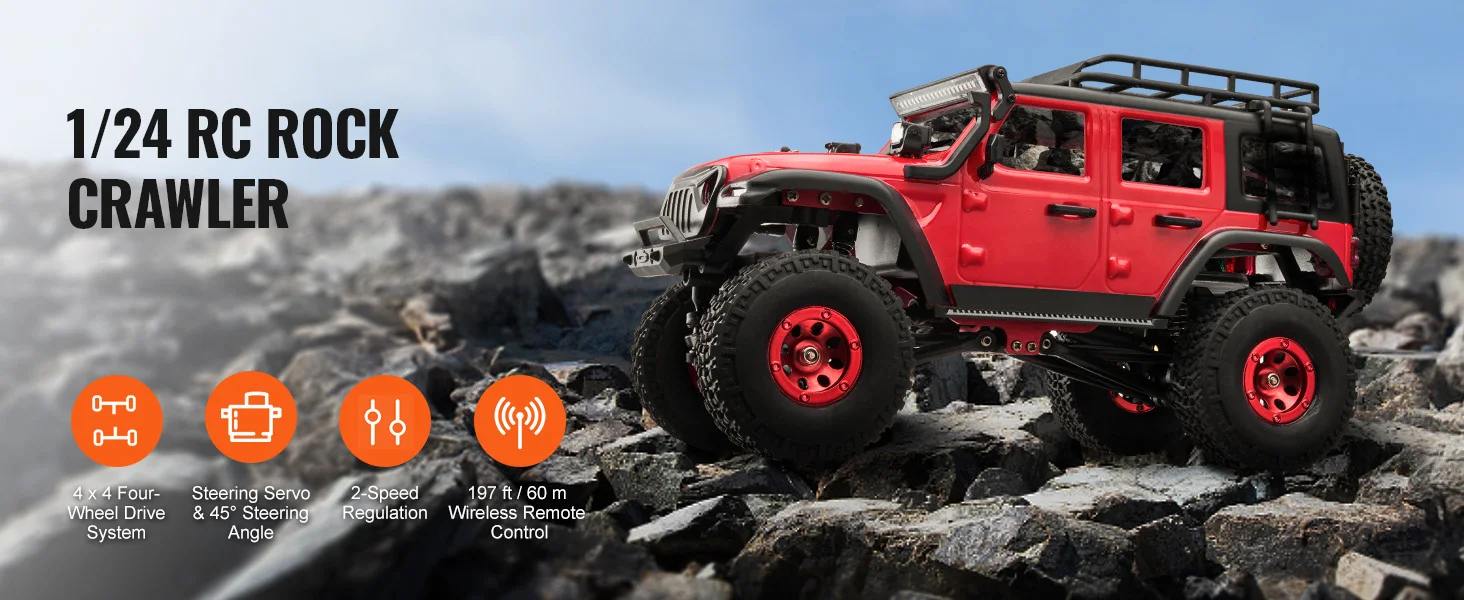 Strong Off-road Capability: Our 1:24 remote control car is equipped with four-wheel drive system, sturdy metal drive shaft, 27,000 RPM super speed motor, and high-grip rubber tires, showing extraordinary off-road capability to cope with all terrains - grass, slopes, gravels, mud and sand.