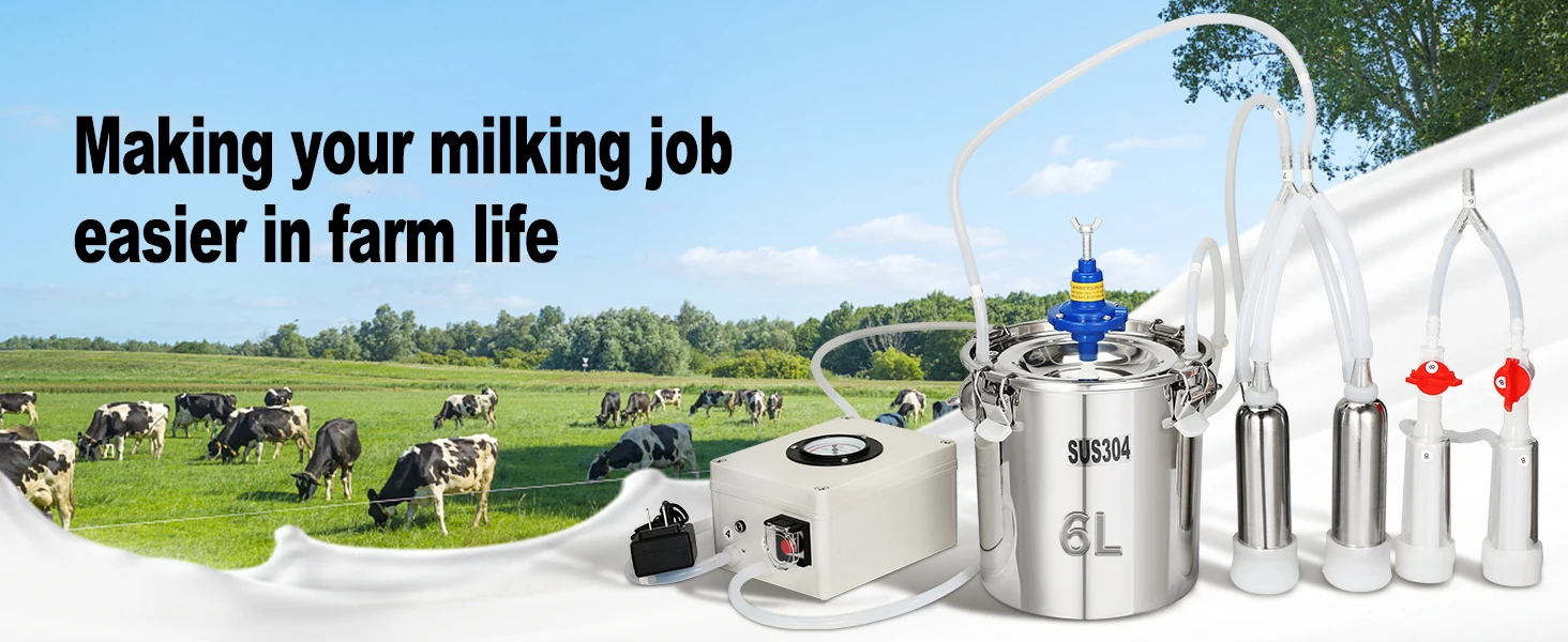 Treat Your Goats and Cows Right: Our goat milker has a vacuum pulsation system that operates similarly to a calf's sucking action. The vacuum pressure is adjustable from 45 to 50 kPa. The milk cups are made of silicone with a smooth inner surface that provides a comfortable massage for your cows or goats without causing them any harm. This leads to less stress for the cows or goats and increased milk production for you.