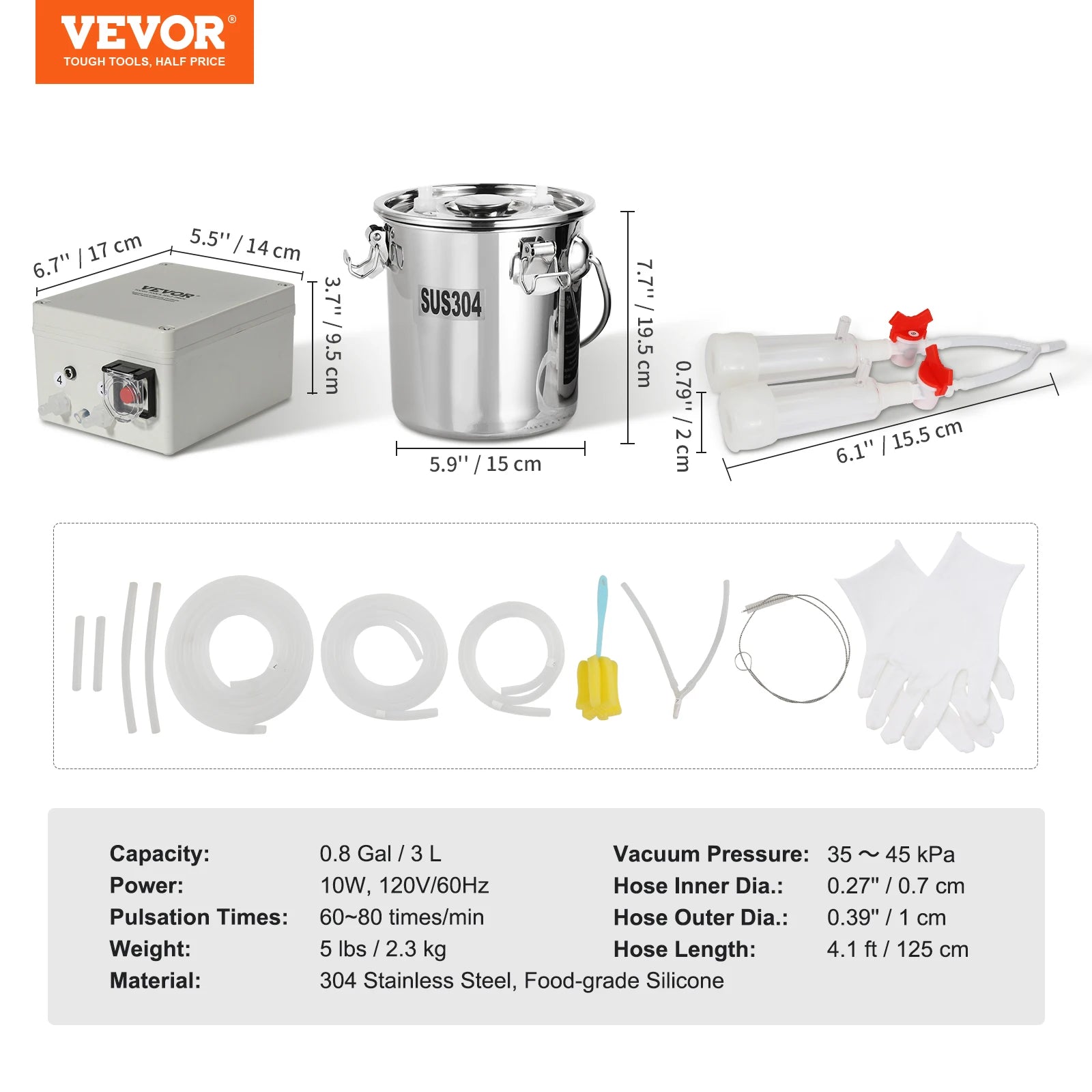 SucceBuy Goat Milking Machine Stainless Steel Bucket Electric Automatic Pulsation Cup Tubes Adjustable Suction for Cow and Sheep