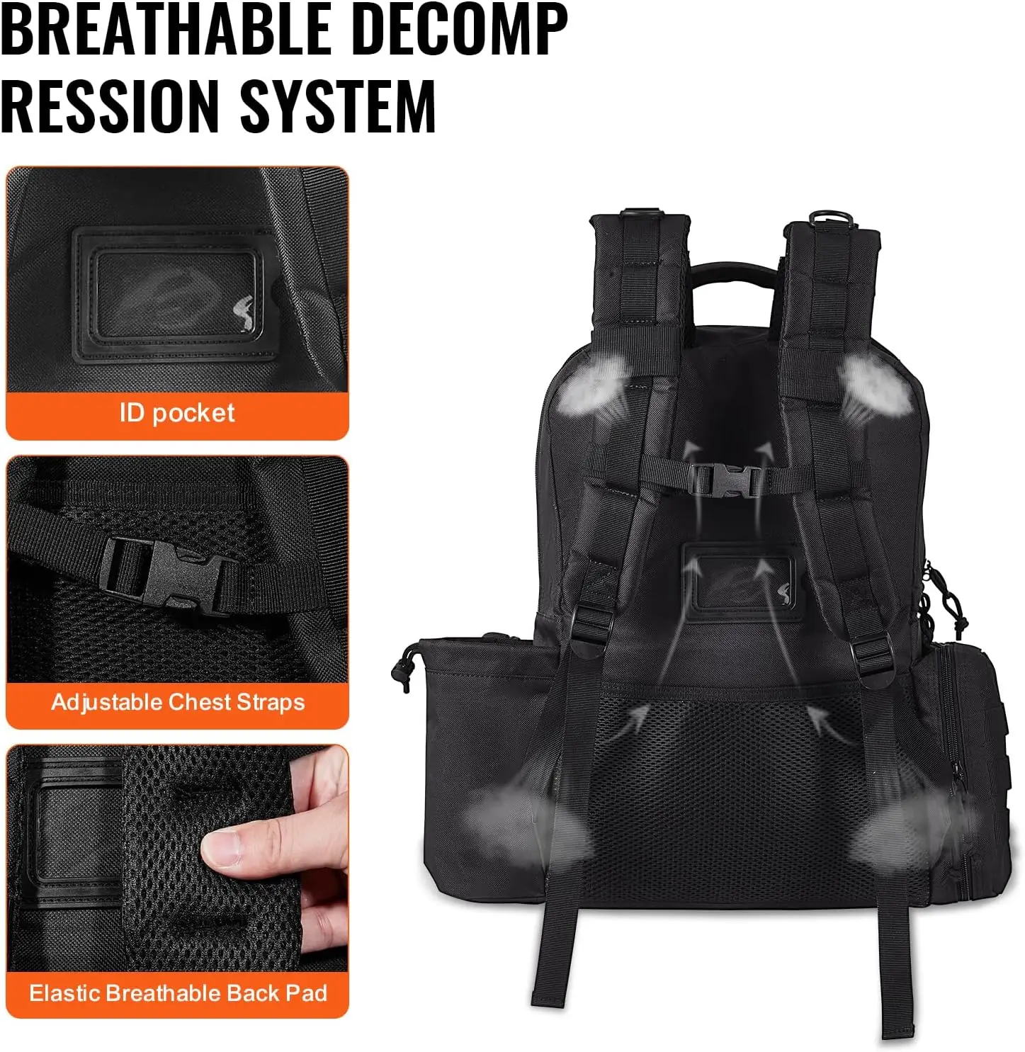 - 【Molle System】The gun backpack has 3 detachable Molle panels, allowing you to expand its storage capacity for additional gear and essentials. Laser-cut Velcro allows for customization with flags and patches, while the back compartment is designed for documents, helping you identify your gun range bag easily in various settings.