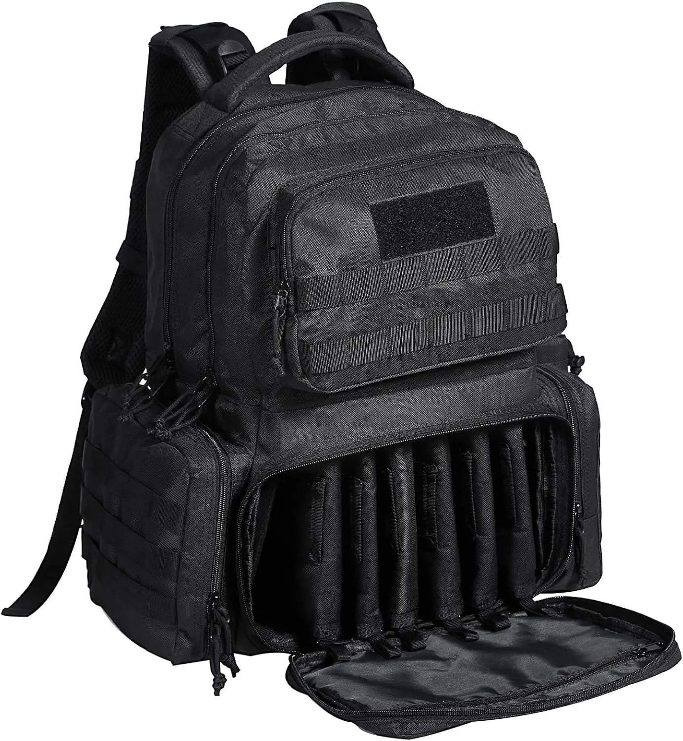 Tactical Range Backpack for 6 Pistols, Gun Backpack with 6 Independent Pistol Bags & 10 Magazines, Pistol Backpack for Outdoor