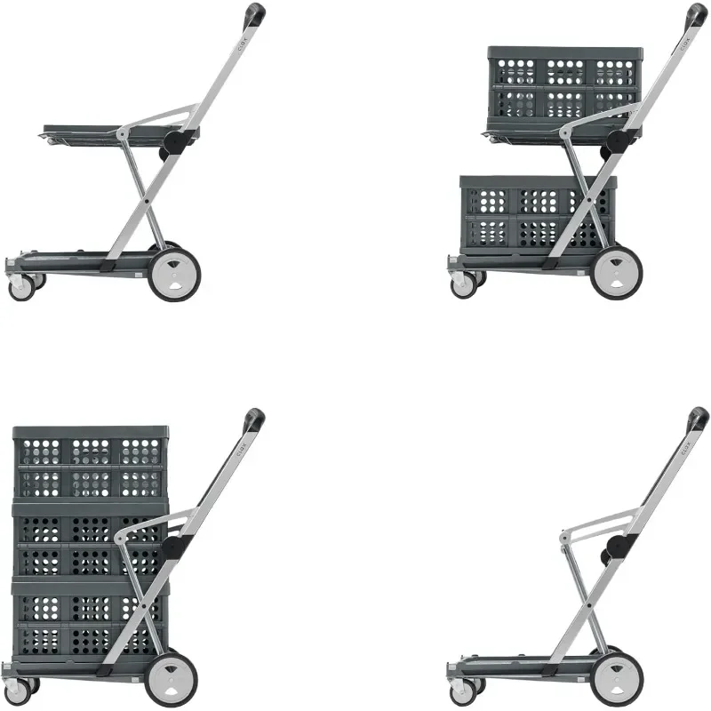 The Original Made in Germany Multi use Functional Collapsible Carts Mobile Folding Trolley | Shopping cart with Storage Crate Platform Truck (Grey)