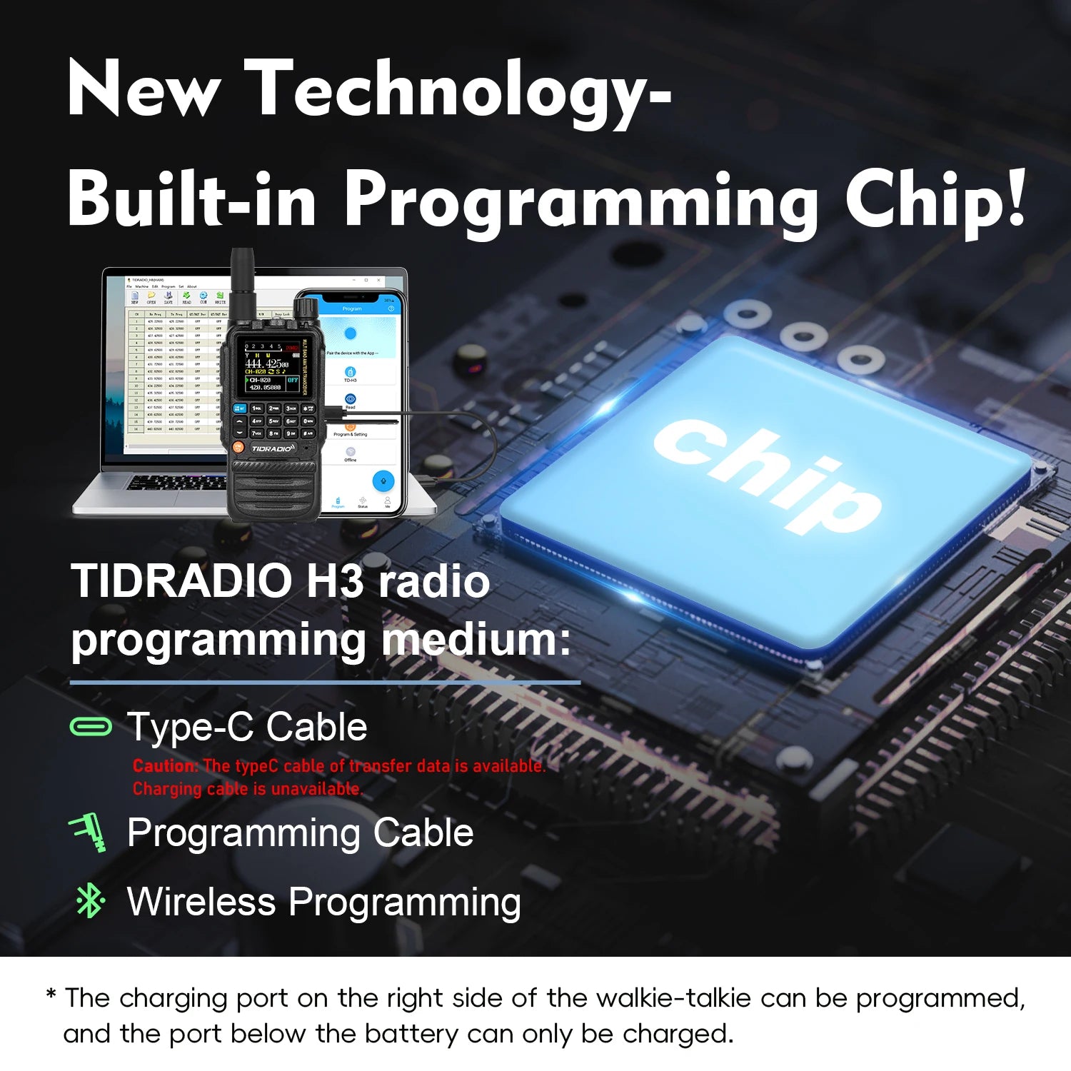 TIDRADIO H3 It can be programmed by connecting to a PC via a normal USB Tpye-C cable, solving the problem of not being able to find a programming cable.