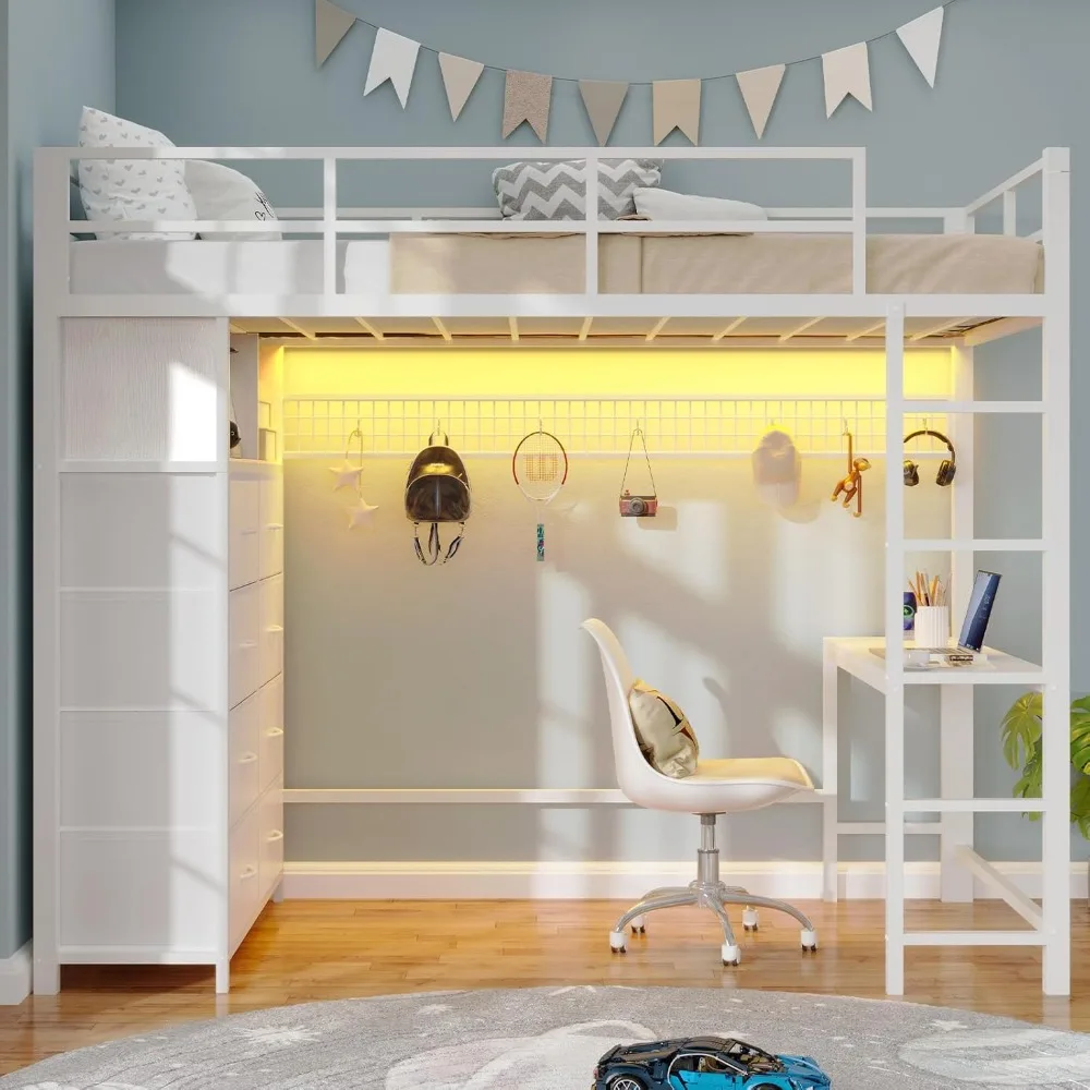 - Smart RGB LED Light: Multi-fuctional loft bed with smart led lights, easily control with remote or APP, comes with various color options and flsahing options, offers a nice ambiance for your bedroom, brighting up your nignt.