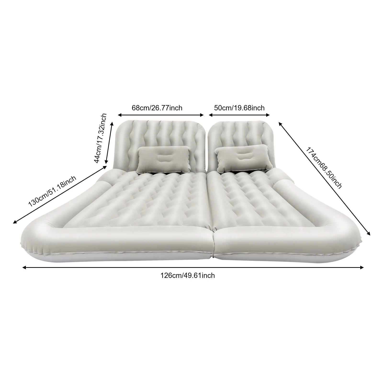 Flexible Use: The flexible double partition (width: 26.77in, 19.69in ) allows you to inflate it as needed, making it convenient for both one and two people, and better fitting the space in your car. In addition, two headrests are equipped to provide you with more convenience. Two head positions can stand up as a backrest.