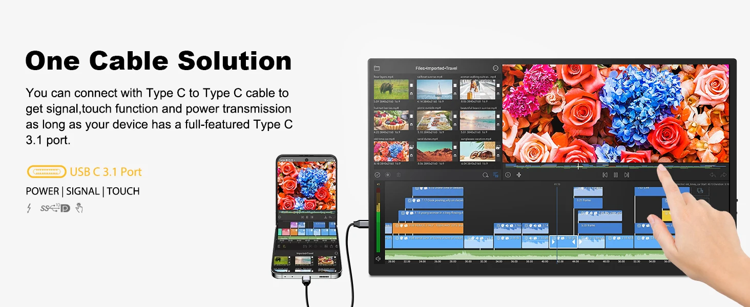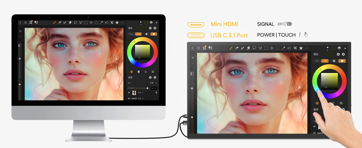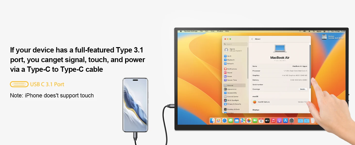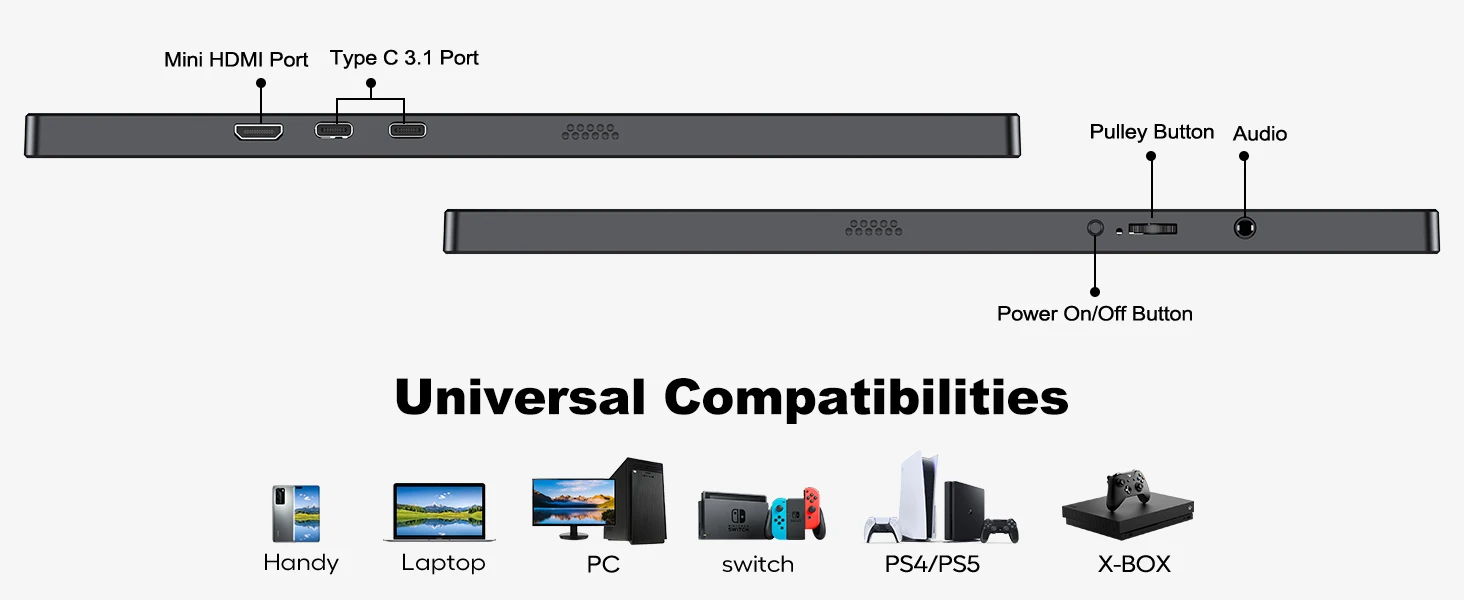 【MULTIPLE PORTS】Equipped with a mini HDMI port and 2 USB C 3.1 ports, you could connect to laptop, PC, Phone, PS3/4, Wii, Steam Deck and Switch. Which could really boost your work productivity and joy of game. This UPERFECT portable computer monitor is suitable for most laptops such as Surface, Macbook, Lenovo and so on.