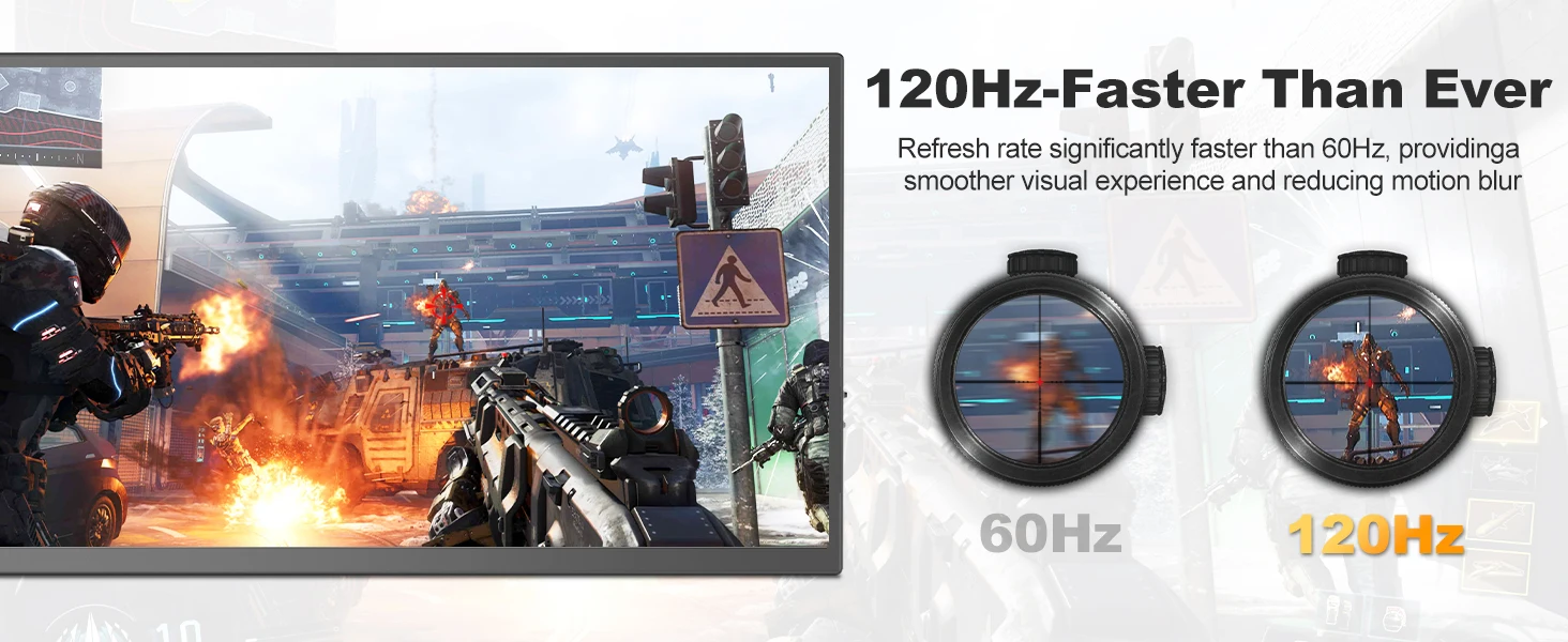【120HZ FAST REFRESH RATE】UPERFECT 18.5inch 120hz portable touchscreen owns 120hz high refresh rate and FreeSync, which made fluent gaming experience. A fast speed of 120Hz allows you to see the next frame quickly and makes image to appear smoothly. The gamers can response rapidly to opponents and aim at target easily using this large portable monitor. FreeSync technology can also virtually eliminates screen tearing and stuttering.