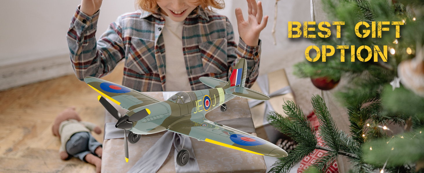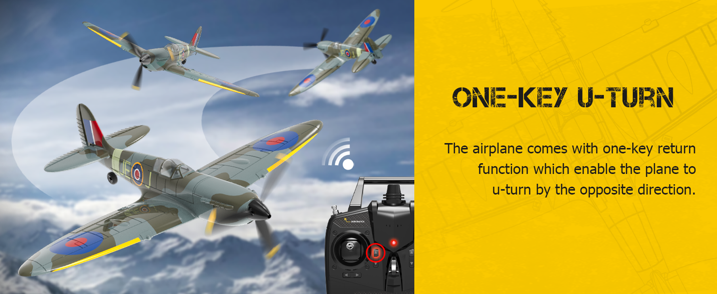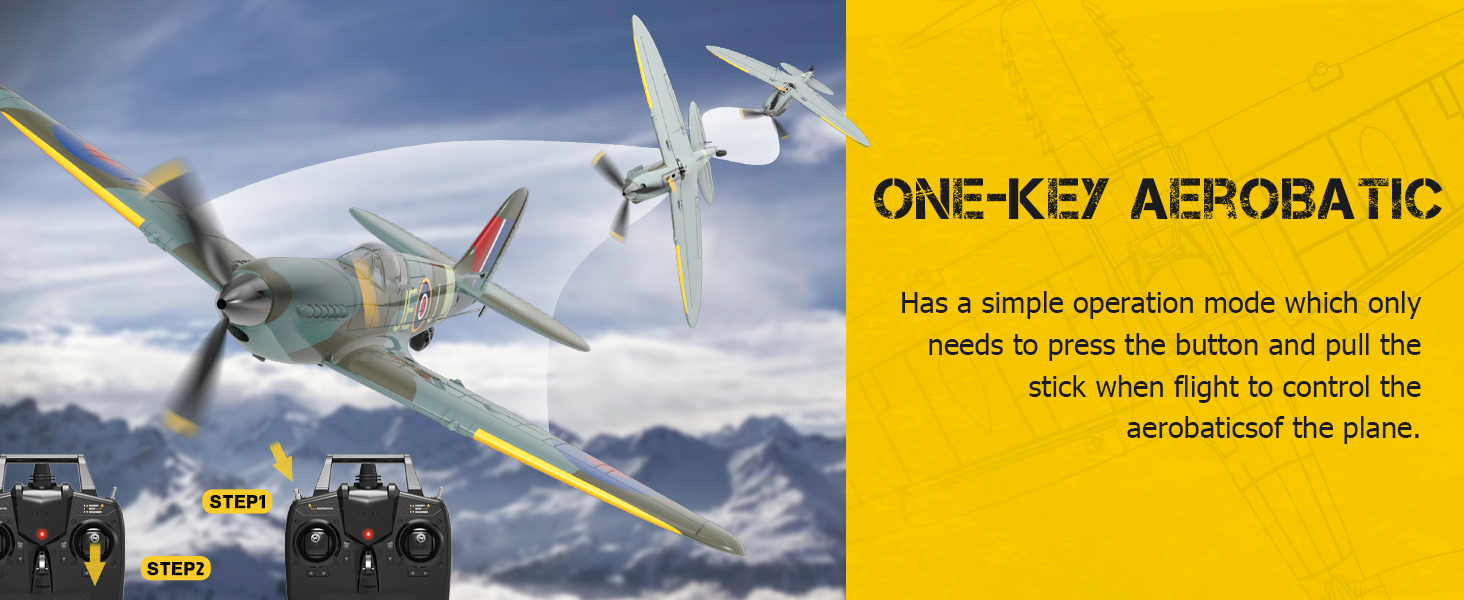 VOLANTEXRC 4-CH RC Plane, SpitfireV2 rtf Remote Control Airplane,One-Key Aerobatic,Suitable for Outdoors and Gifts