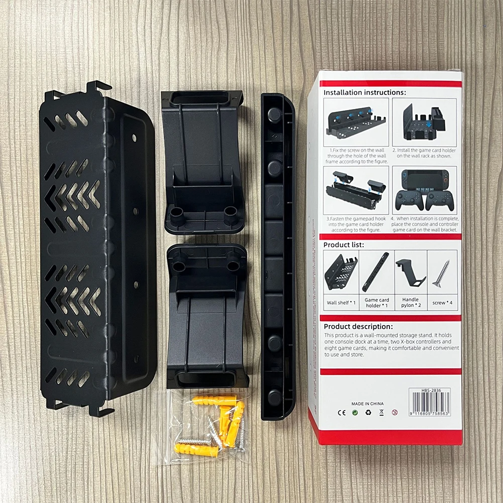 Wall Mount with 8 Game Card Holders and Controller Hooks Metal Wall Bracket Console Holder Stand for Nintendo Switch2