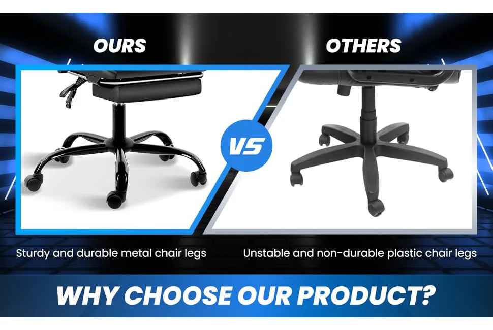 ✅【High Quality Materials】 Instead of traditional plastic legs, our gaming chairs utilize sturdy metal legs to ensure durability and strength, allowing you to experience unparalleled stability and support. Combined with a 360° swivel seat and 3-inch height customization, it's sturdy and flexible for extended use .✔