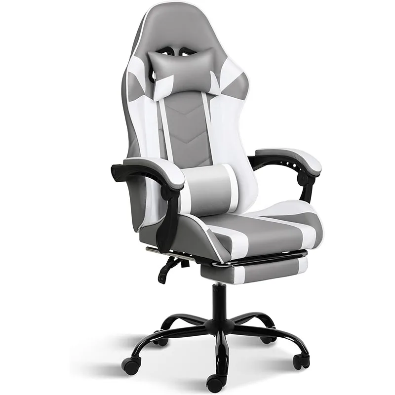 YSSOA Gaming Chair, Computer Chair with Footrest, Height Adjustable & 90°-135° Tilt Function, Swivel Recliner Ergonomic Racing Style Video Game Chair with Lumbar Support (Black/Grey)