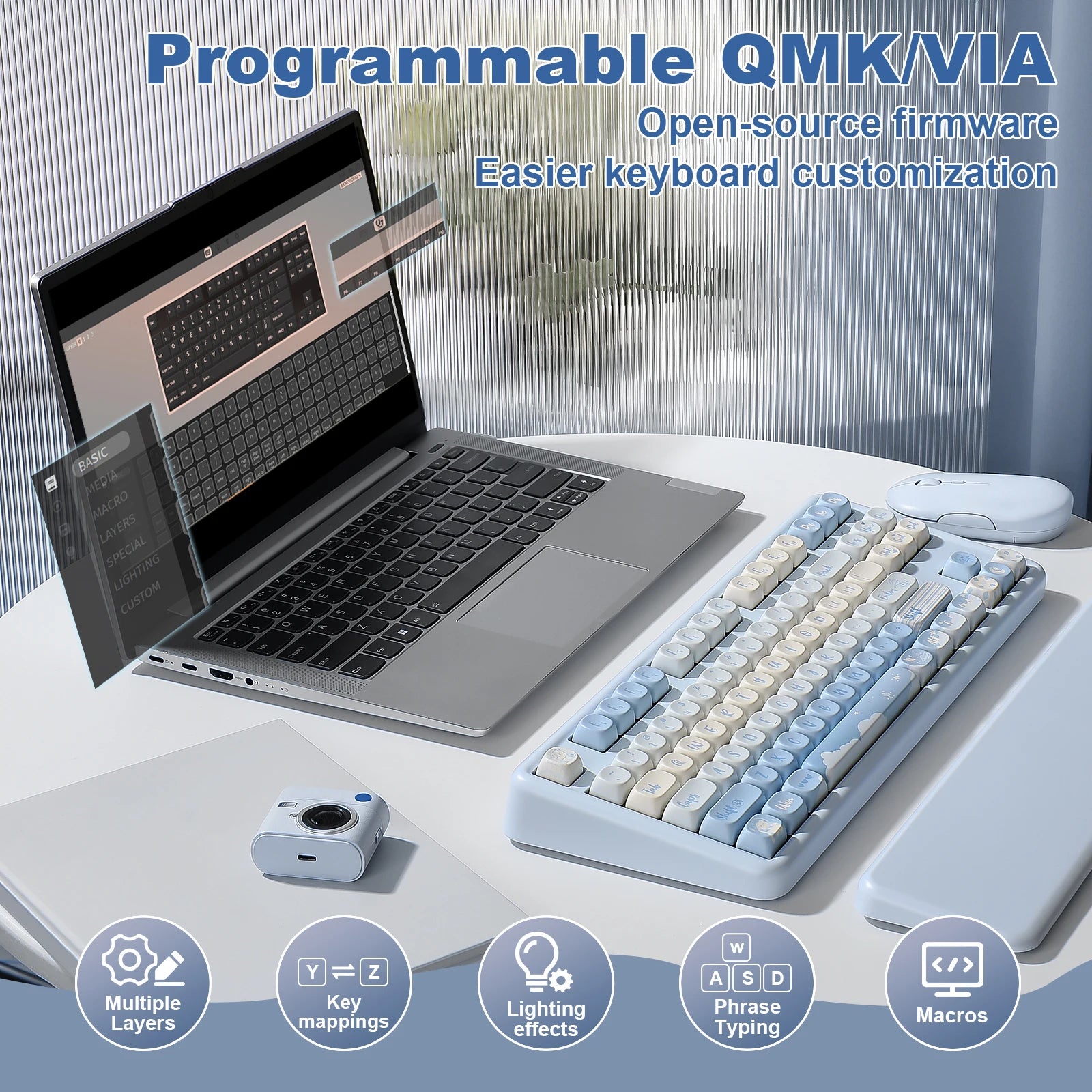 YUNZII B87 mechanical keyboard supports QMK/VIA software customization and provides users with a seamless experience to modify the keyboard directly from the web browser. From key mappings, phrase typing, and multiple layers to macro and lighting effects, users can build a completely personalized keyboard according to their liking and needs. The functionality, playability, and cute keycap design of the B87 Bluetooth keyboard will make it a companion in your digital life.