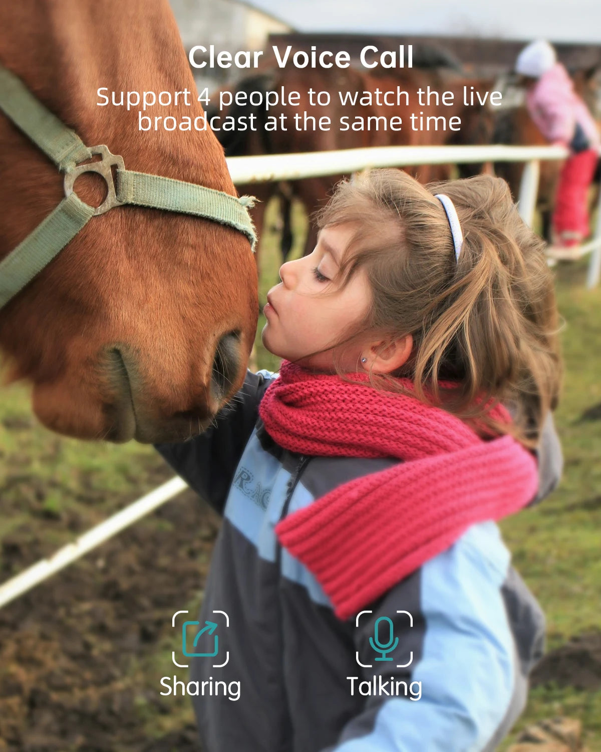 The outdoor security camera's remote access and 2-way talk features allow you to monitor your home and communicate with people near the camera. With the remote sharing function, you can share live footage with up to 4 family members or friends, enabling them to help monitor your home or property
